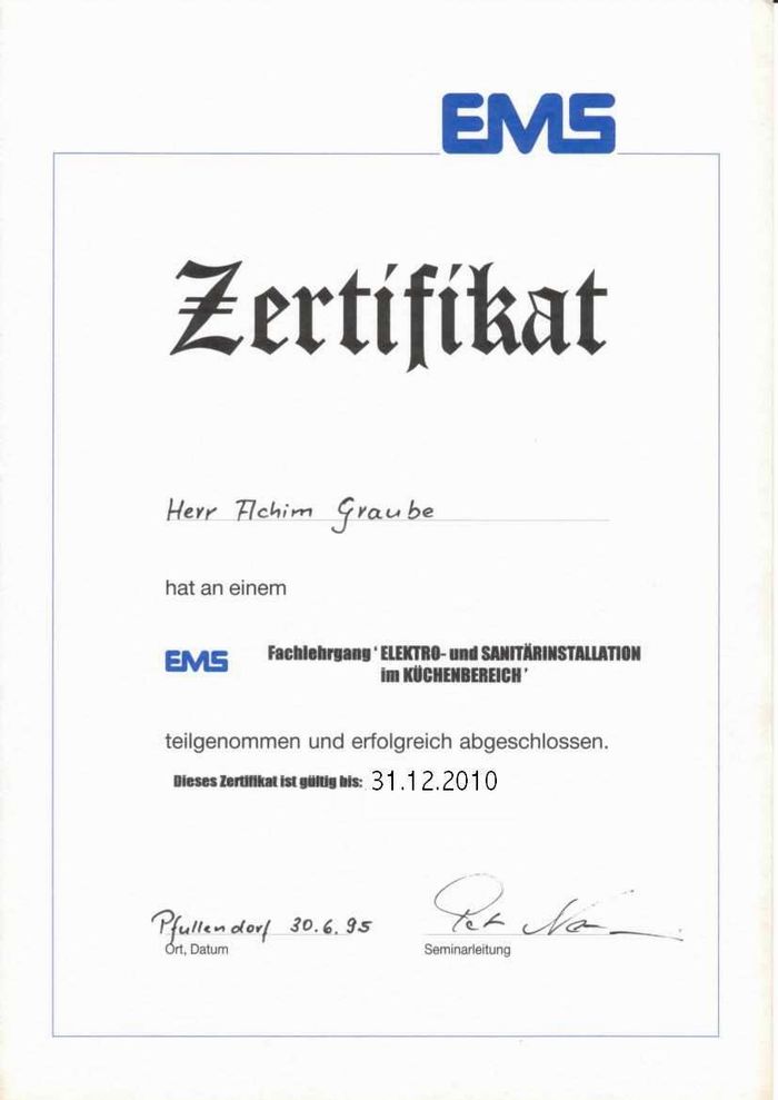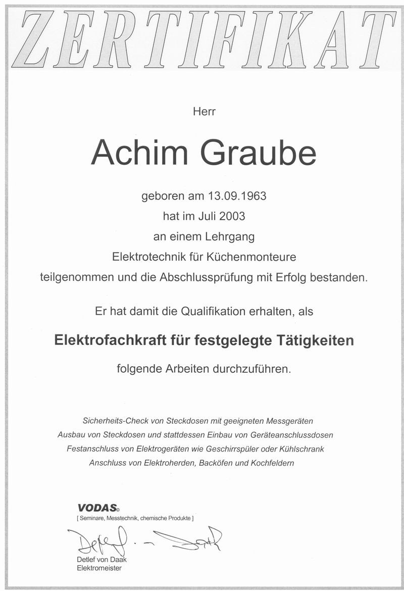 Entsprechend qualifizierte Küchenschreiner, schließen ihre Geräte im Verlauf der Montage. Eine zusätzliche Anfahrt des Elektrofachmanns bleibt erspart und die Küche ist am selben Abend gebrauchsfähig.